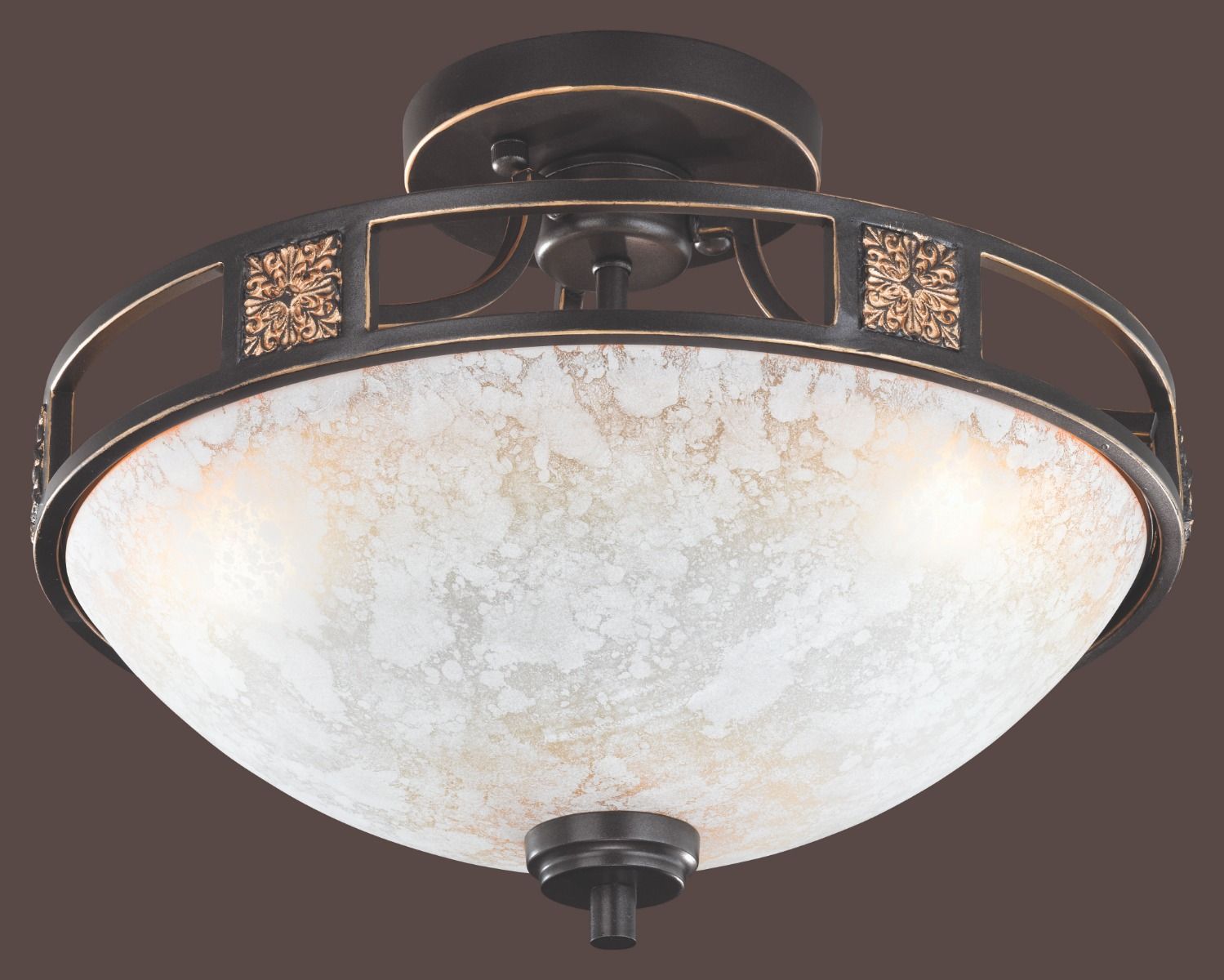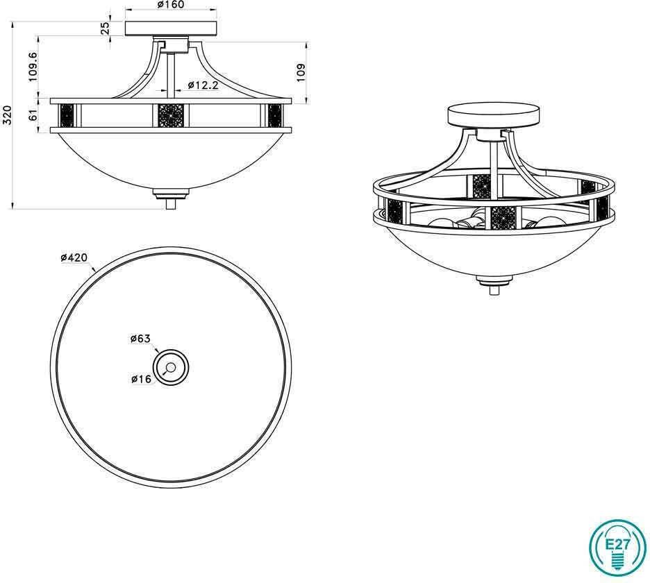 Πλαφονιέρα Οροφής Ø42xΥ20εκ. Τρίφωτη 3xE27 Μέταλλο Αντικέ Σκουριά-Έγχρωμο Γυαλί Αλάβαστρος Trio Quinta 608100324