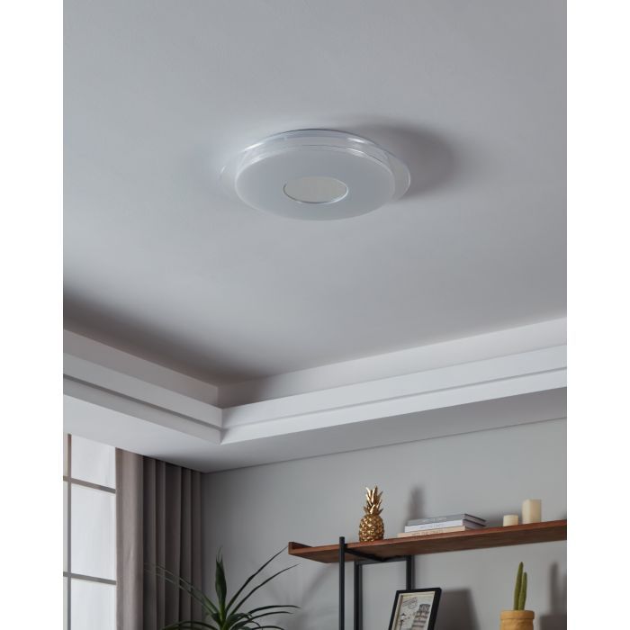 Μεταλλική Πλαφονιέρα Οροφής Λευκή 45xH8cm LED 2700-6500Κ 540lm Εφαρμογή-Τηλεχειριστήριο Eglo Lanciano 900083