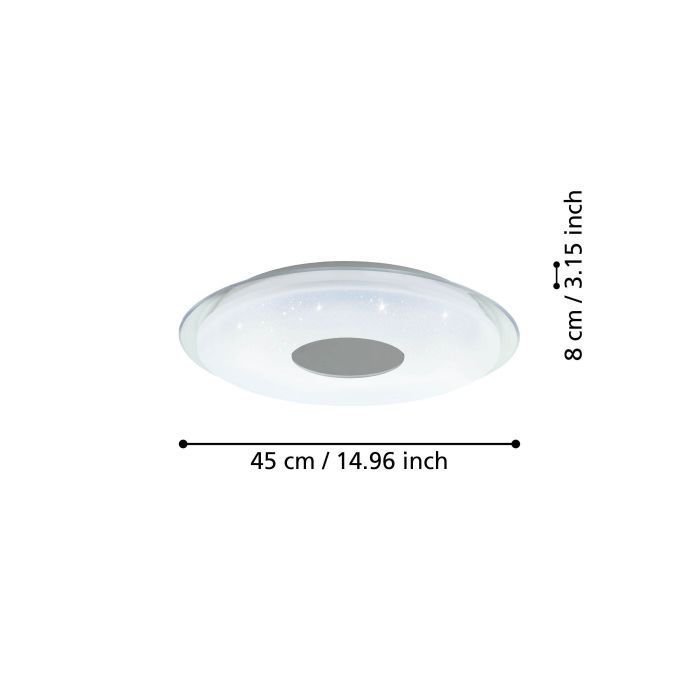 Πλαφονιέρα Οροφής Λευκή 45xH8cm LED 2700-6500Κ 540lm Εφαρμογή-Τηλεχειριστήριο Eglo Lanciano 900083