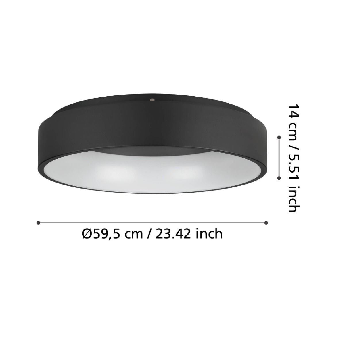 Πλαφονιέρα Οροφής Μέταλλο Μαύρο 59,5xH14cm LED 3000K 1050lm Ρυθμιζόμενη Eglo Marghera 2 390051