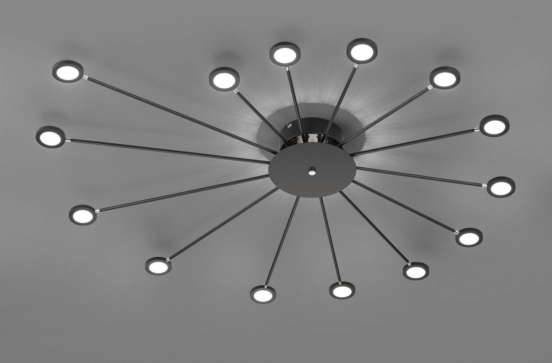 Πλαφονιέρα Οροφής Μαύρη Ματ 115xH10cm Led 15x2,6w 15x270lm 3000Κ Switch Dimmer Trio Lighting Peacock 679511532