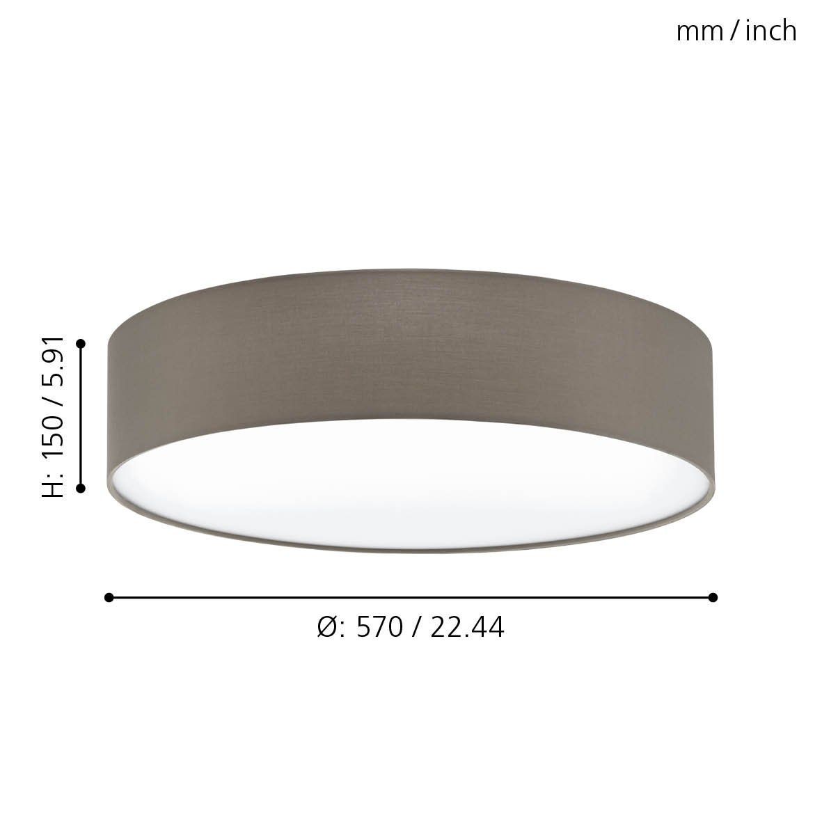 Πλαφονιέρα Οροφής Υφασμάτινη Γκρι 57xH15cm E27 Eglo Pasteri 97612