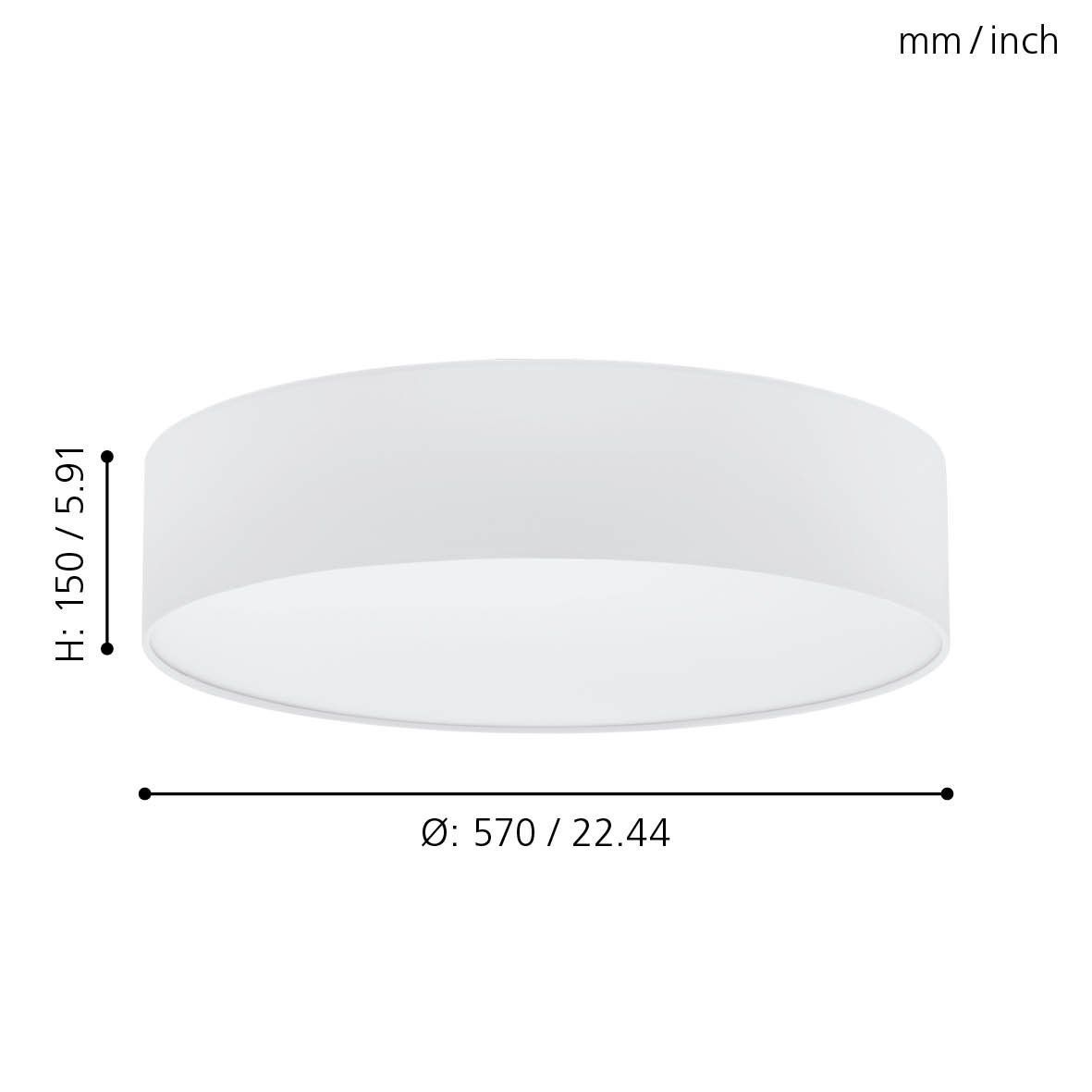 Πλαφονιέρα Οροφής Υφασμάτινη Λευκή 57xH15cm E27 Eglo Pasteri 97611