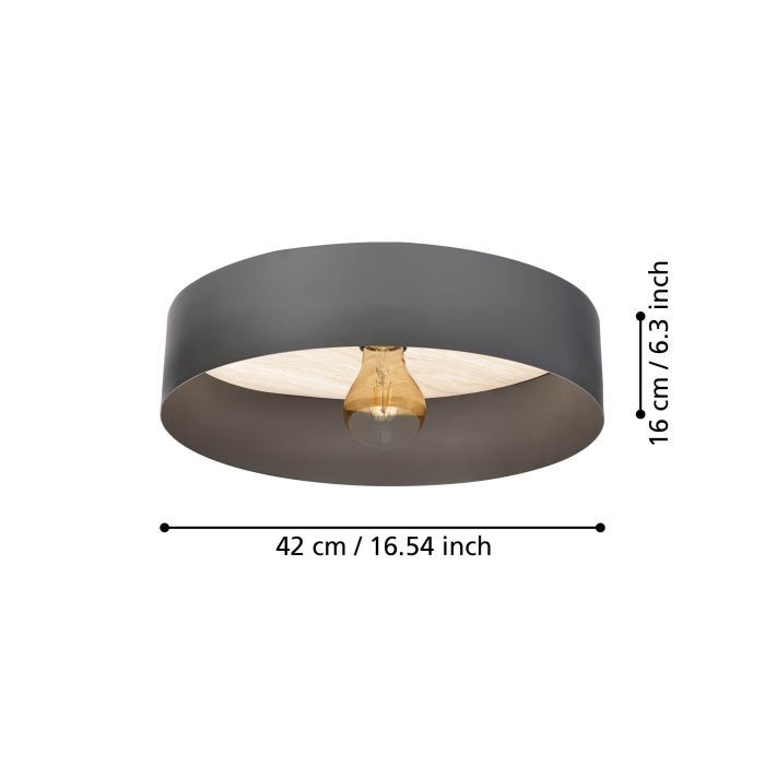 Πλαφονιέρα Οροφής 42cm Γκρι 1xE27 Eglo Duaia 900837