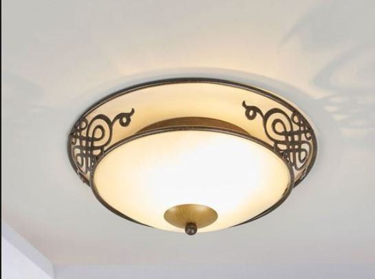 Ceeling luminaire, steel, antique brown /gold glass chalked / beige.