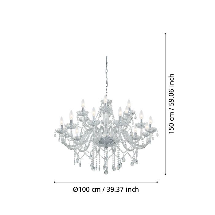 Πολυέλαιος Δεκαοκτάφωτος Ø100cm 18xE14  Διάφανος Eglo Basilano 39103
