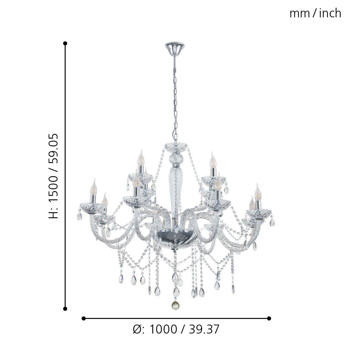 Πολυέλαιος Οκτάφωτος 82xH130cm 8xE14 Χρώμιο -Διάφανο Eglo Basilano 39101Ειδική Τιμή 499,00 € Κανονική τιμή 618,76 € -