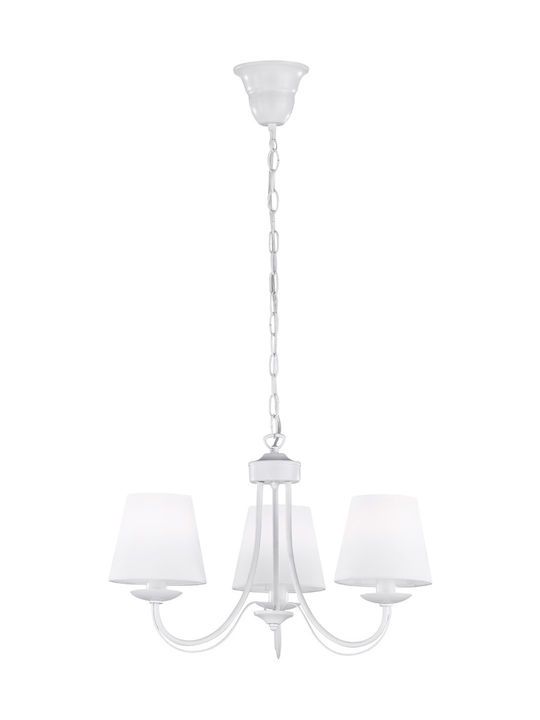 Πολυέλαιος Τρίφωτος Ø52xH150cm Μέταλλο Λευκό Ματ -Αμπαζούρ Υφασμάτινα Trio Lighting Cortez 110600331
