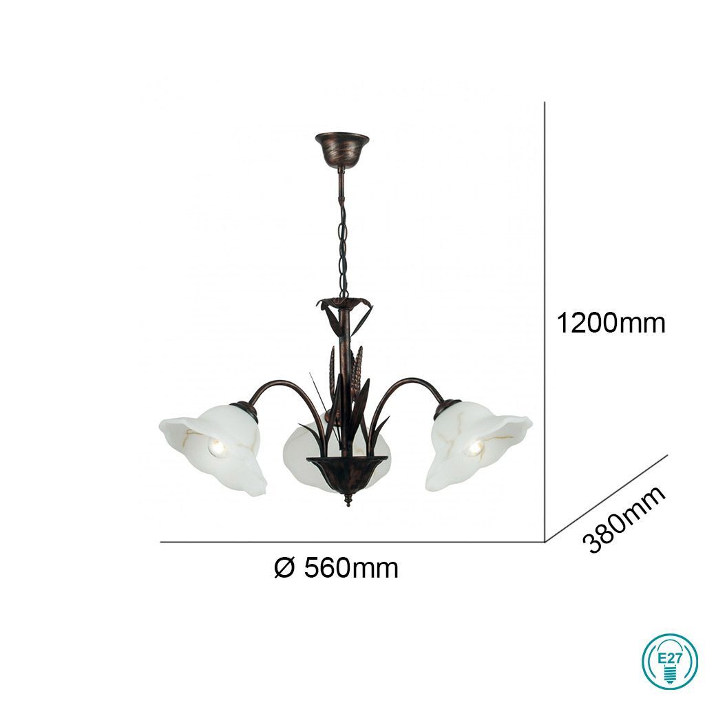 Πολυέλαιος Τρίφωτος 3xΕ27 Ø64xH110cm Μέταλλο-Γυαλί Luce Design by Faneurope Ι-Byron/RUG 8031440353038