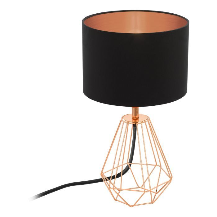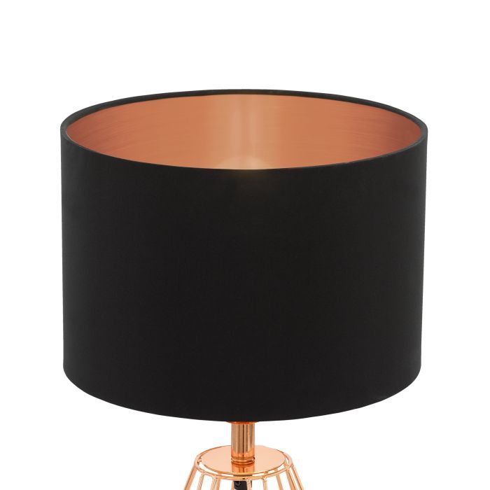 Μοντέρνο πορτατίφ της Eglo με μαύρο καπέλο και βάση σε ροζ χρυσό χρώμα, από μέταλλο.