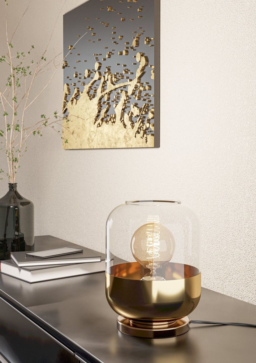 Μοντέρνο πορτατίφ της Eglo με βάση σε χρυσό χρώμα, από γυαλί.