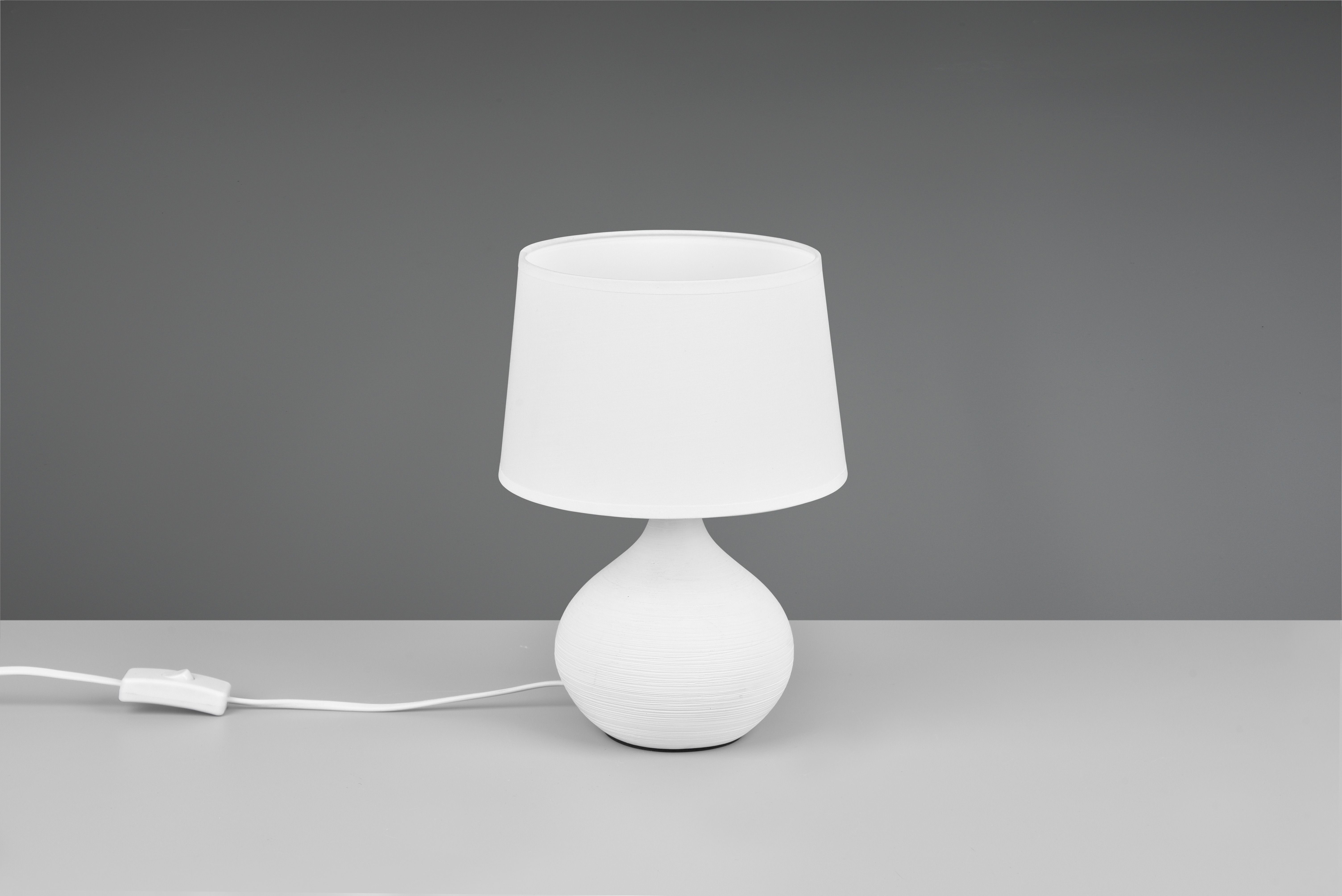 The ceramic lamp also has a cord switch, which makes it easy to use. The table lamp is 29 cm high and the fabric shade has a diameter of 20 cm.