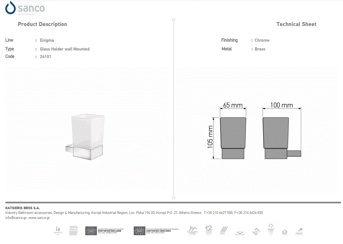 Αίνιγμα σημαίνει η περιγραφή των χαρακτηριστικών ενός αντικειμένου, με τρόπο ώστε ο ακροατής να μπορέσει να το μαντέψει σωστά. Η σειρά Enigma της sanco, περιλαμβάνοντας αρκετά πολλαπλά αξεσουάρ, καλύπτει άριστα και έξυπνα τις ανάγκες μπάνιων για ξενοδοχεία και κατασκευές. Ταυτόχρονα όμως, χαρακτηρίζεται από το δυναμικό, σύγχρονο σχεδιασμό της, που την κάνει περιζήτητη για χρήση σε μπάνια με υψηλή αισθητική