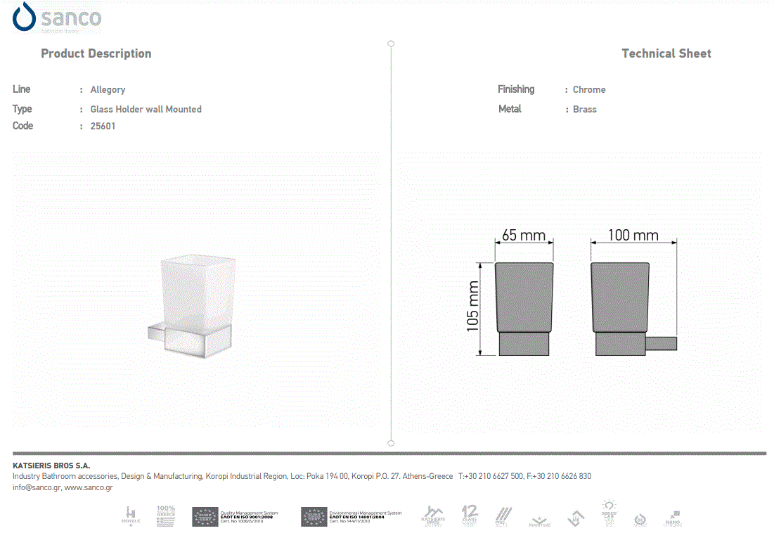 Ποτηροθήκη Επιτοίχια Chrome Sanco Allegory 25601-A03