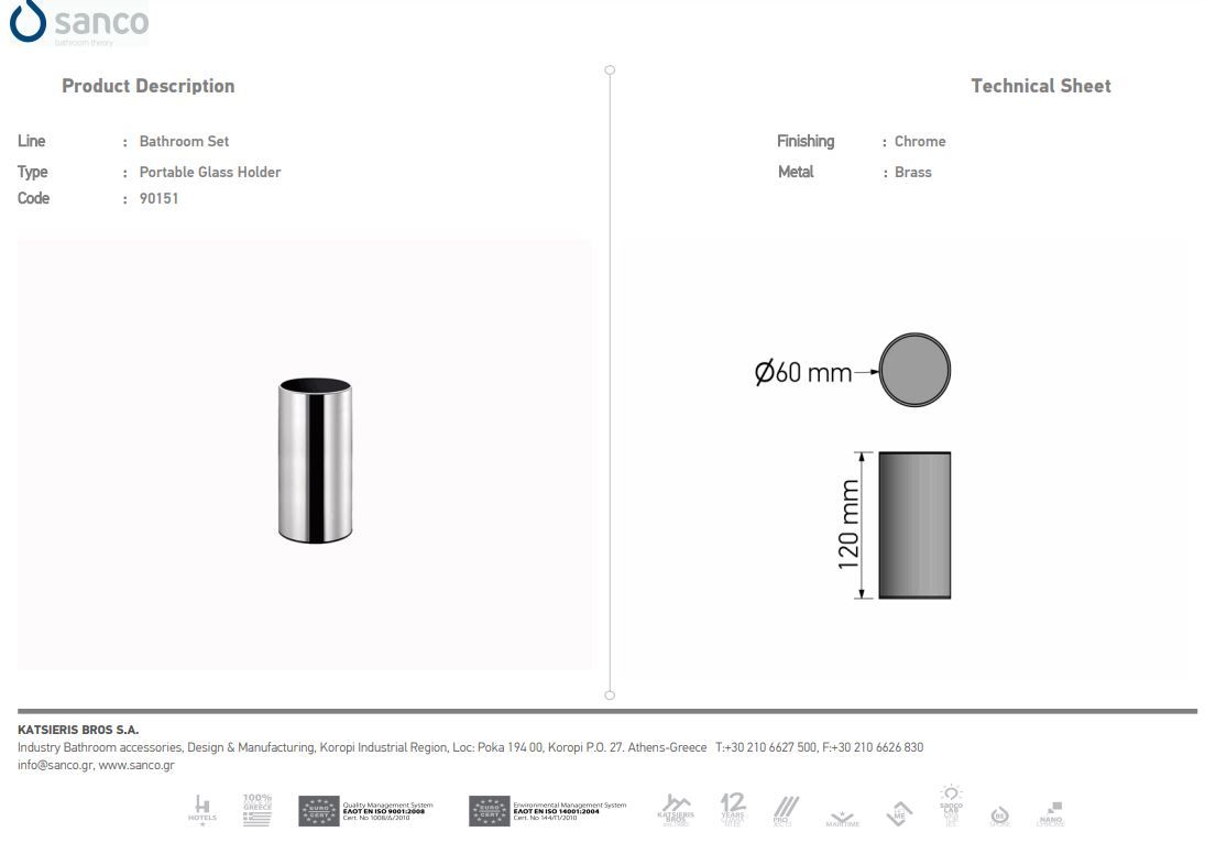 Ποτηροθήκη Επιτραπέζια 6x6x12 cm Brass Chrome Sanco Metallic Bathroom Set 90151-A03.