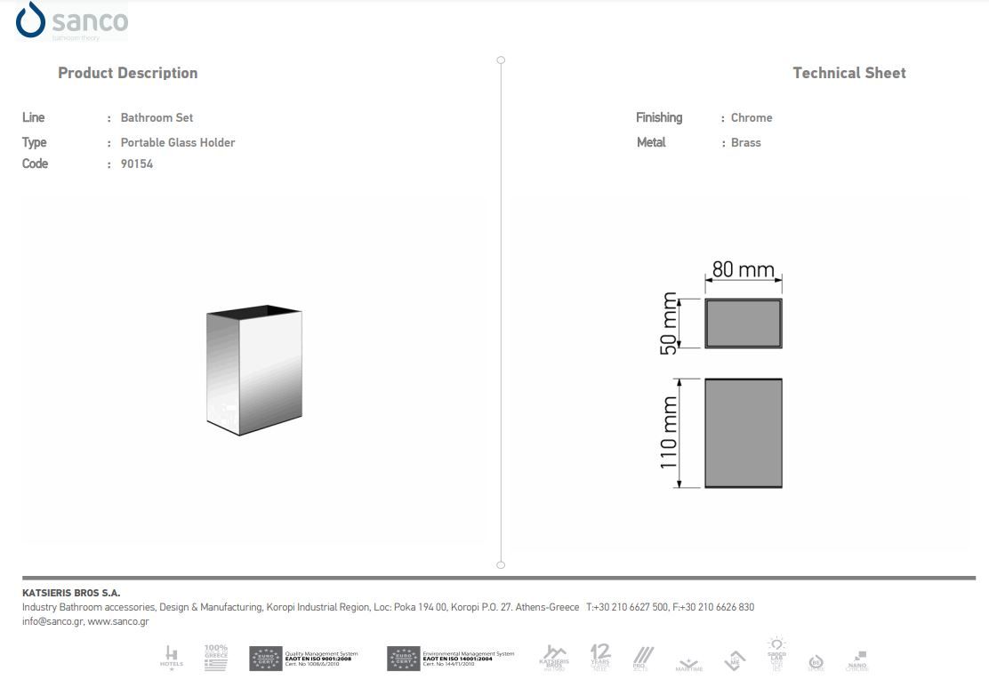Ποτηροθήκη Επικαθήμενη 8x8x10 cm Brass Chrome Sanco Metallic Bathroom Set 90156-A03Ειδική Τιμή 27,00 € Κανονική τιμή 30,00 € -