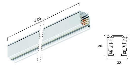 - ✔ Περιγραφή: Ράγα Τριφασική Λευκή 3m