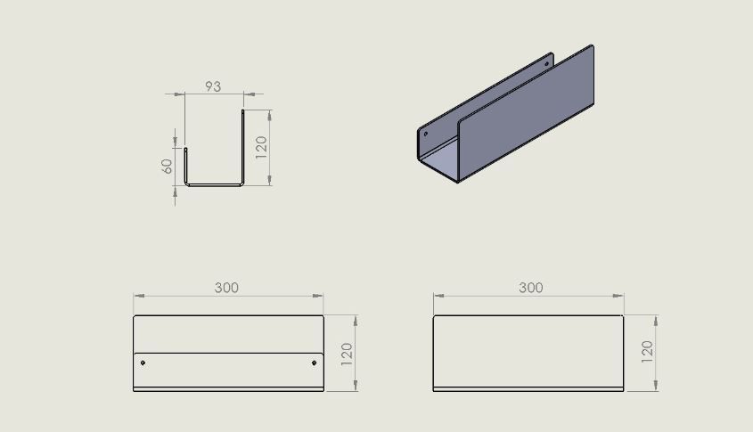 Ράφι Υψηλής Πρόσοψης με Αποστράγγιση W300xD93xH120mm Stainless Steel Black Matt Verdi Strantza 7233405