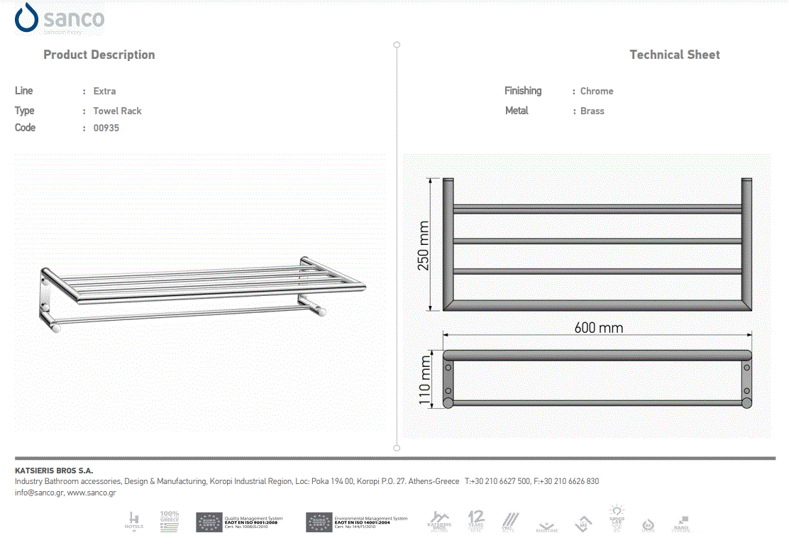 Διατίθεται σε φινίρισμα: Chrome, Graphite Dark, White Mat, Beige Mat, Black Mat, Anthracite Grained, Dark Bronze Mat, Gun Metal, Brushed Nickel, Brass Brushed, Brushed Gun Metal, Bronze Mat Old Copper Mat.