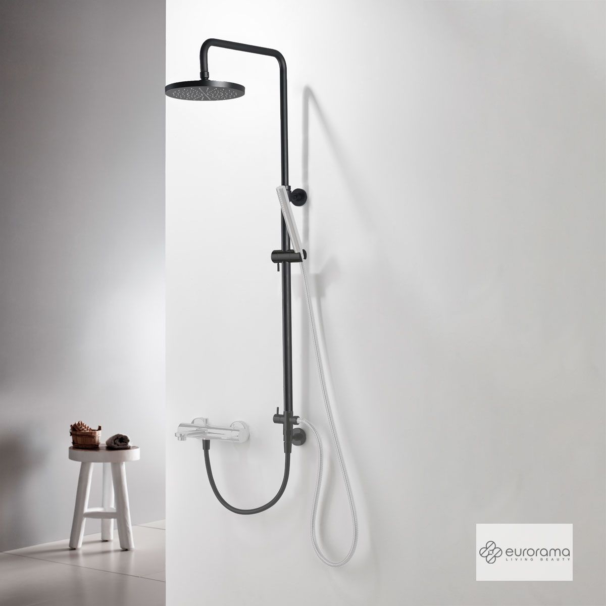 Ρυθμιζόμενη Κολώνα Ντους με κεφαλή Φ20 για σύνδεση μεΜπαταρία Λουτρού, Black Matt 51400R-400