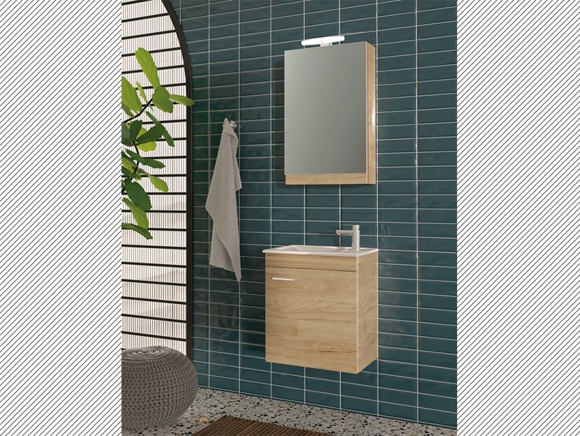 Σετ Έπιπλο Μπάνιου Βάση -Νιπτήρας-Καθρέπτης -Φωτιστικό M50xΠ31,5xY50cm Μελαμίνη Light Hickory Savvopoulos Economy Emily III-8086