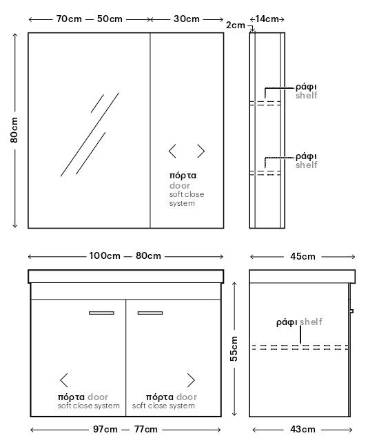 Σετ Έπιπλο Μπάνιου Βάση 80cm  Βάση -Νιπτήρας-Καθρέπτης -Φωτιστικό Savvopoulos Economy Emily-II-80-8086