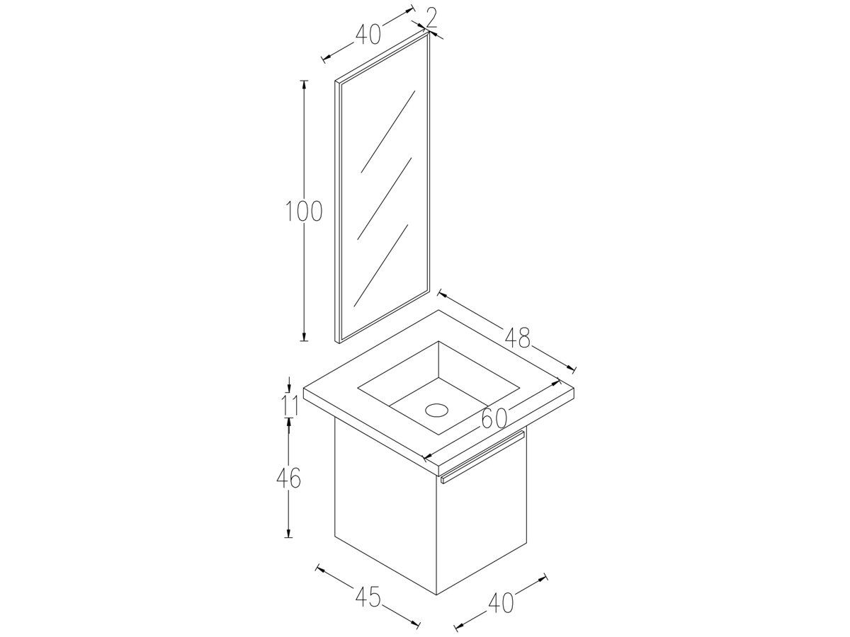 Σετ Έπιπλο Μπάνιου-Νιπτήρας Τύπου Corian 40cm-Καθρέπτης 40x100cm, Χρώμα Cherry ECO-40A FT21.040.006C