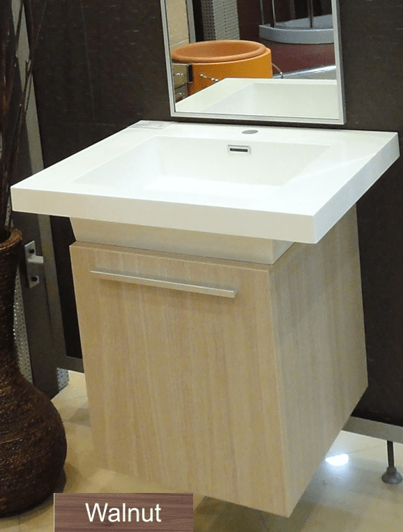 ECO-40A, Σετ Κρεμαστό Έπιπλο Μπάνιου 60 cm, ένα ντουλάπι με ένα εσωτερικό ράφι, WalnutΛευκός επικαθήμενος νιπτήρας από τεχνητό μάρμαρο τύπου Corian.