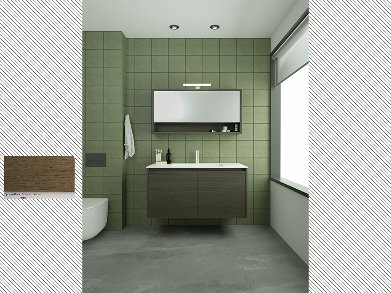 Σετ Έπιπλο Μπάνιου 91*50 εκ.Δρυς Ανθρακί σε Κ/Π Θαλάσσης,Νιπτήρας Solid Λευκό, Καθρέπτης, Φωτιστικό, Urban IΙ