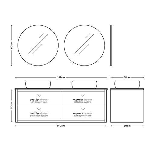 Το έπιπλο έχει τέσσερα συρτάρια με απαλό κλείσιμο Soft Closing.