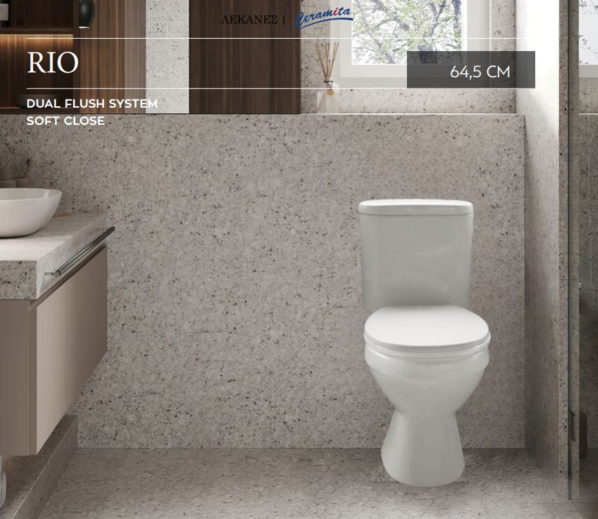 Σετ Λεκάνη Χ.Π Πισωστόμια Κομπλέ με κάλυμμα Soft Close Προβολή 64,5 εκ. Ceramita Rio P-Trap