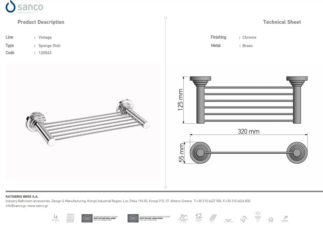 Σπογγοθήκη Διπλής Στήριξης Chrome Sanco Vintage 120543-Α03