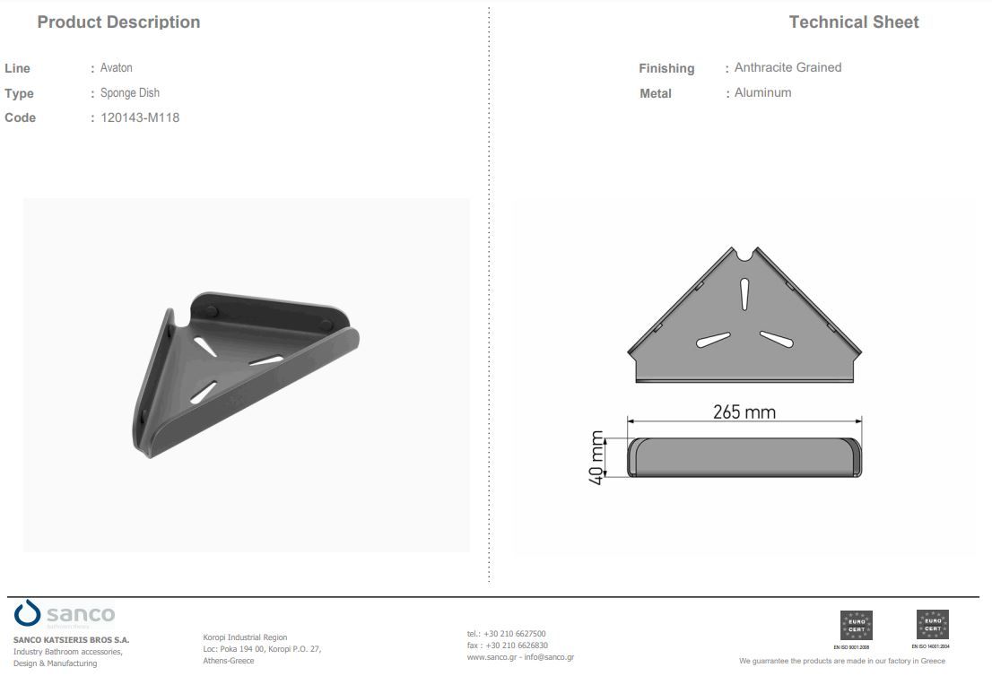 Πιγκάλ Επίτοιχο Sanco Avaton Graphite Dark 120110-122Ειδική Τιμή 72,00 € Κανονική τιμή 80,00 € -