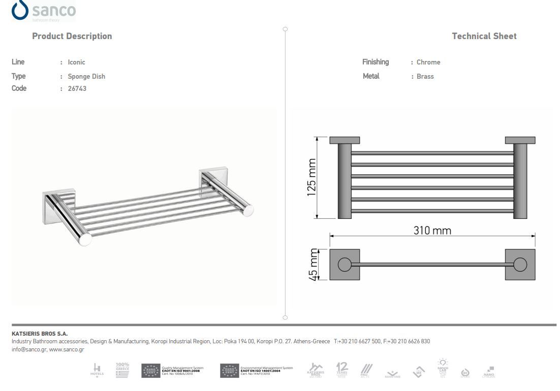 Διαστάσεις: W310 x D125 x Η 45 mm