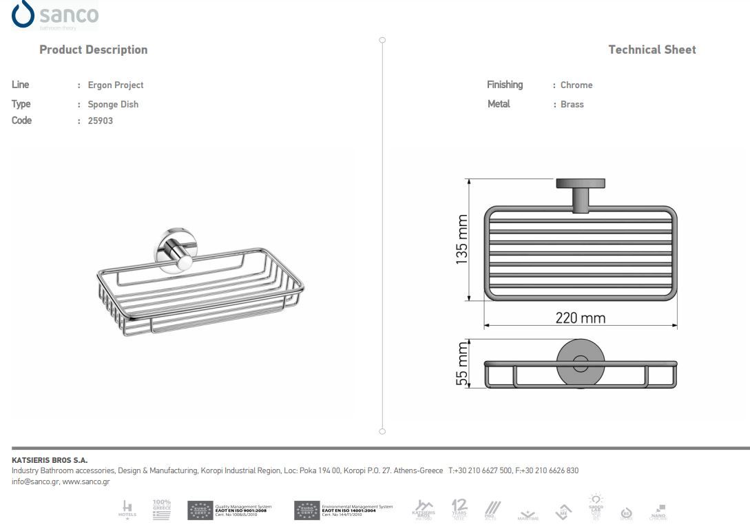 Σπογγοθήκη Μονής Στήριξης Bronze Mat Sanco Ergon 25903-M25
