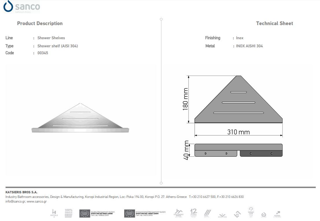 Σπογγοθήκη Γωνιακή W22,5xD16,5xH2,5 cm Chrome Sanco Shower Shelves 0347-A03Ειδική Τιμή 85,50 € Κανονική τιμή 95,00 € -