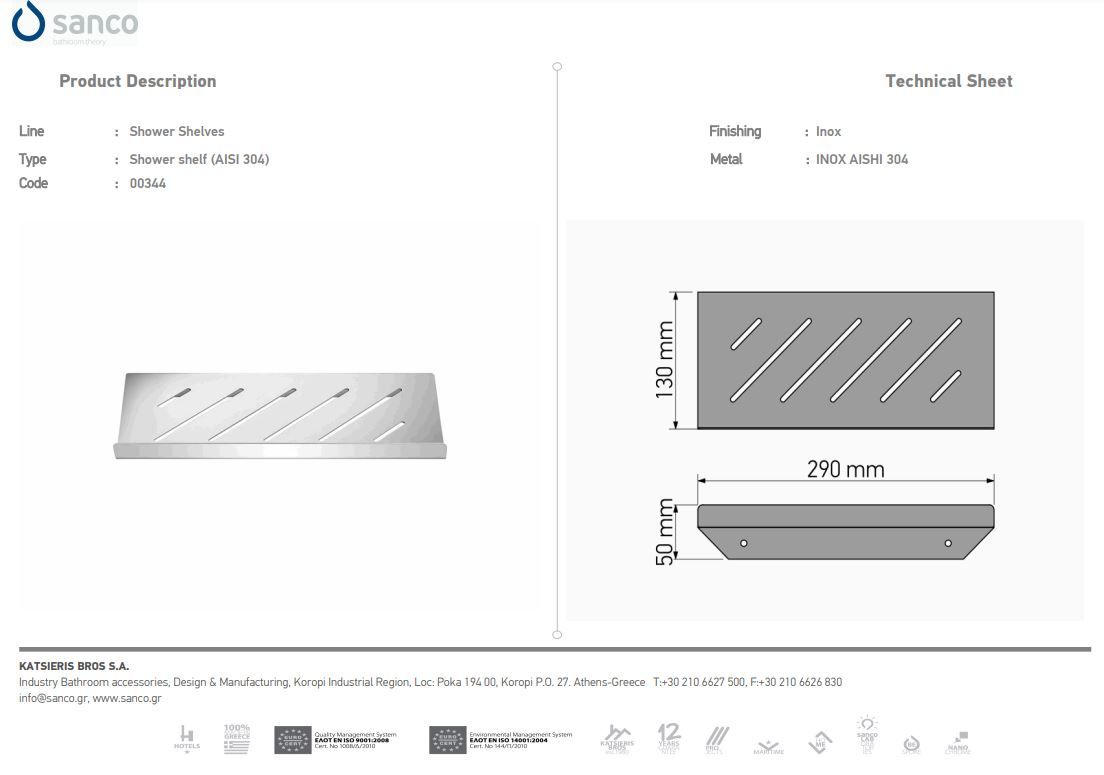 Σπογγοθήκη-Ραφιέρα Επιτοίχια W29xD13xH5cm Inox Aishi 304 Sanco Shower Shelves 0344-A90Ειδική Τιμή 49,50 € Κανονική τιμή 55,00 € -