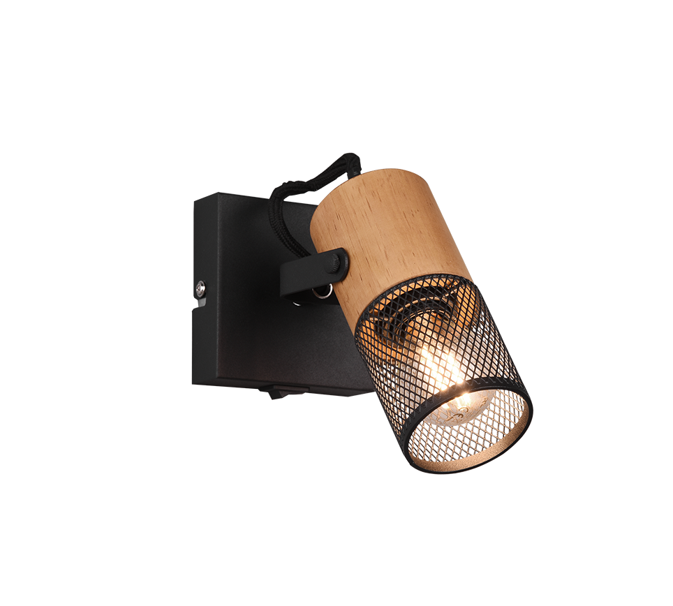 Σποτ Μονόφωτο 9xH13cm 1xE14 Μαύρο Μέταλλο-Ξύλο Trio Lighting Tosh 804370132