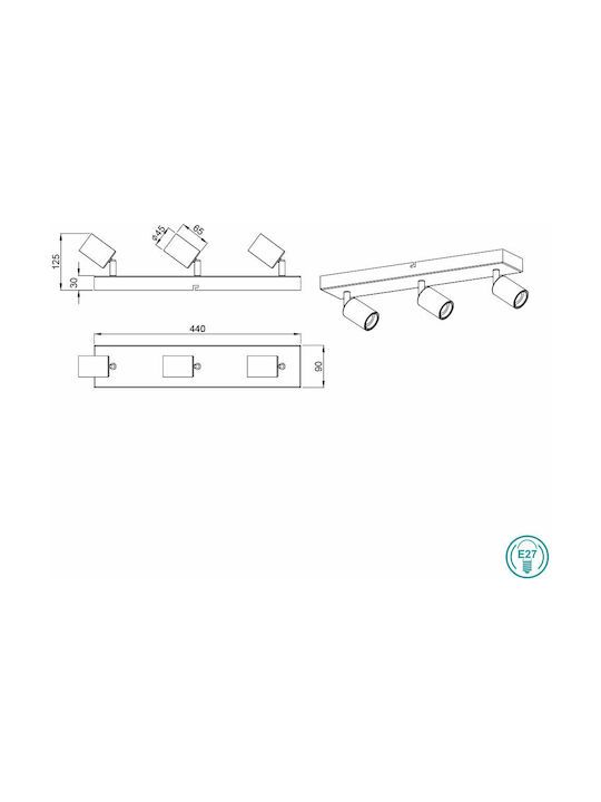 Σποτ Ράγα Τρίφωτο L44x12x9cm 3xΕ27 Μαύρο Ματ Trio Vannes R80183032