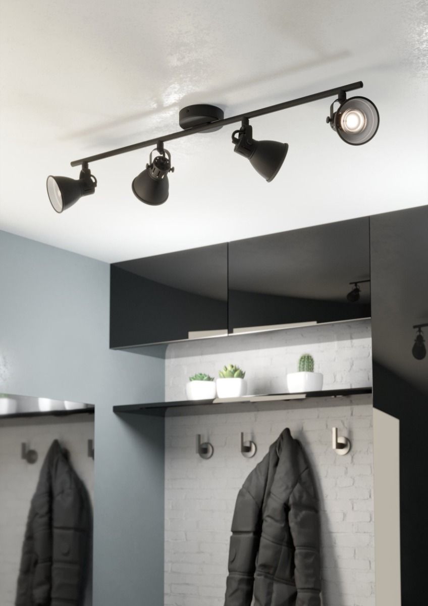 Σποτ με 4 φώτα με ντουί GU10 της Eglo σε μαύρο χρώμα.