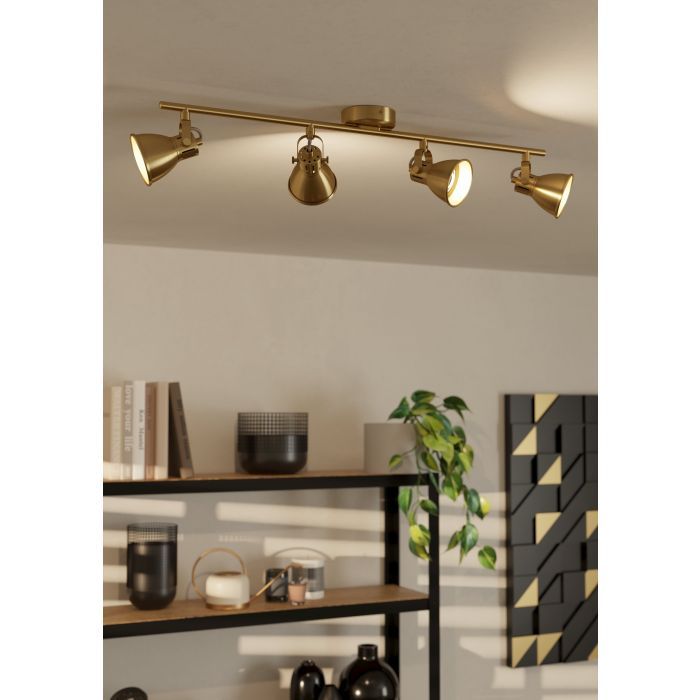 Σποτ Τετράφωτο Ατσάλι Χρυσαφί Led 4xGU10 3000K 250lm L770mm Eglo Seras 900173