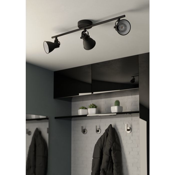 Τριπλό σποτ με ντουί GU10 της Eglo σε μαύρο χρώμα.