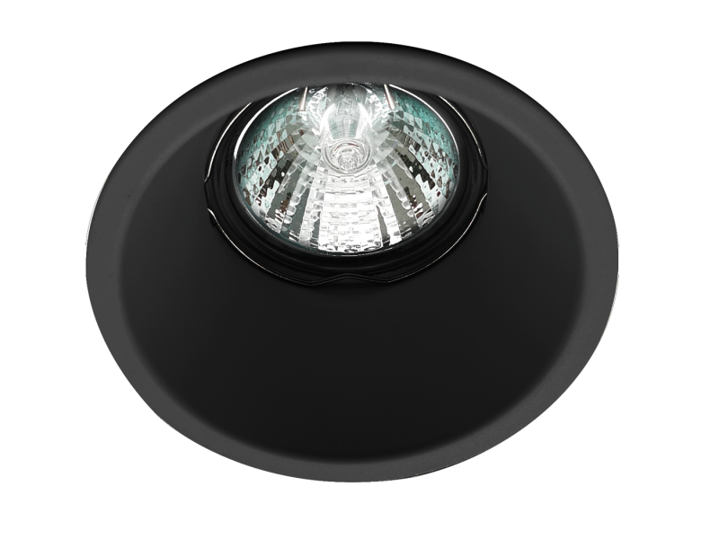 Recessed Aluminium downlights in white or black.