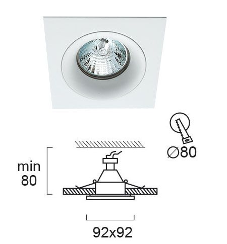 Σποτ Χωνευτό Τετράγωνο 92x92xmin 80mm 1xGU10 Αλουμίνιο Λευκό Viokef Tim 4182800