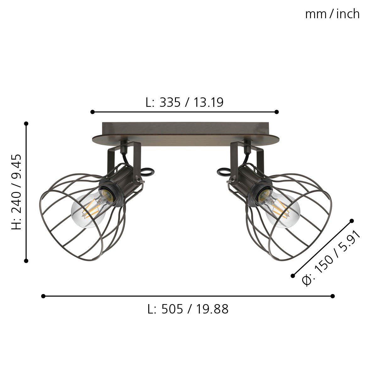 Σποτ L480xH260mm Δίφωτο 2xE27 Μαύρο-Καφέ Ξύλο Eglo Sambatello 98135