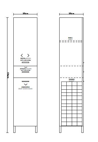 Στήλη με Πόδια Π35xΥ177xΒ35 εκ.Μελαμίνη Απόχρωση Cemento, 2 Ντουλάπια-Συρτάρι- Καλάθι Απλύτων Savvopoulos Pillar 925520-8763