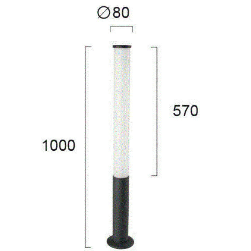 Διαστάσεις: Ύψος 100 εκ x Ø 8 x Επιφάνεια Φωτισμού 57 εκ.