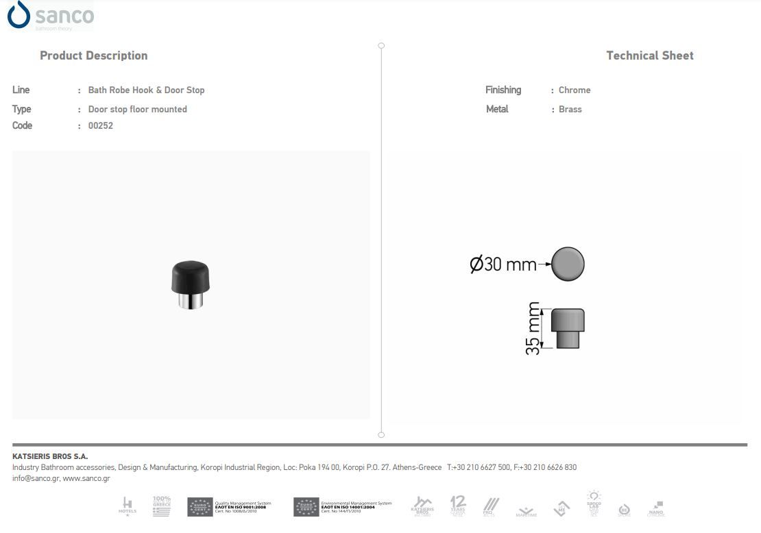 Στοπ Πόρτας Επιδαπέδιο White Mat Sanco Hotel Door Stop 0252-M101