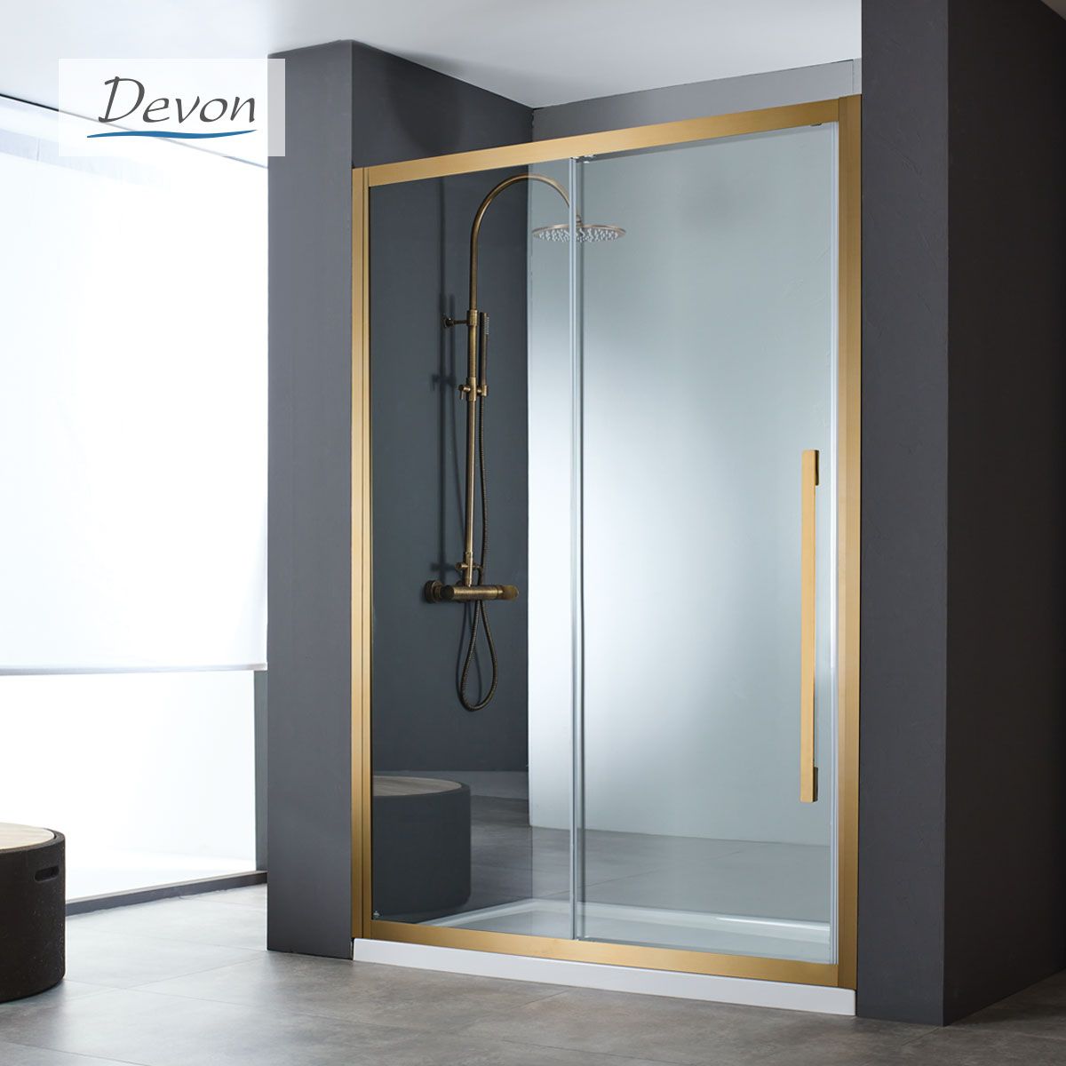 Συρόμενη πόρτα καμπίνας ντουζιέρας Noxx 120 ύψους 200εκ. ρυθμιζόμενη από 117 έως 119εκ. Devon Clean Glass AISI304 PVD Bronze Brushed SLN120C-221
