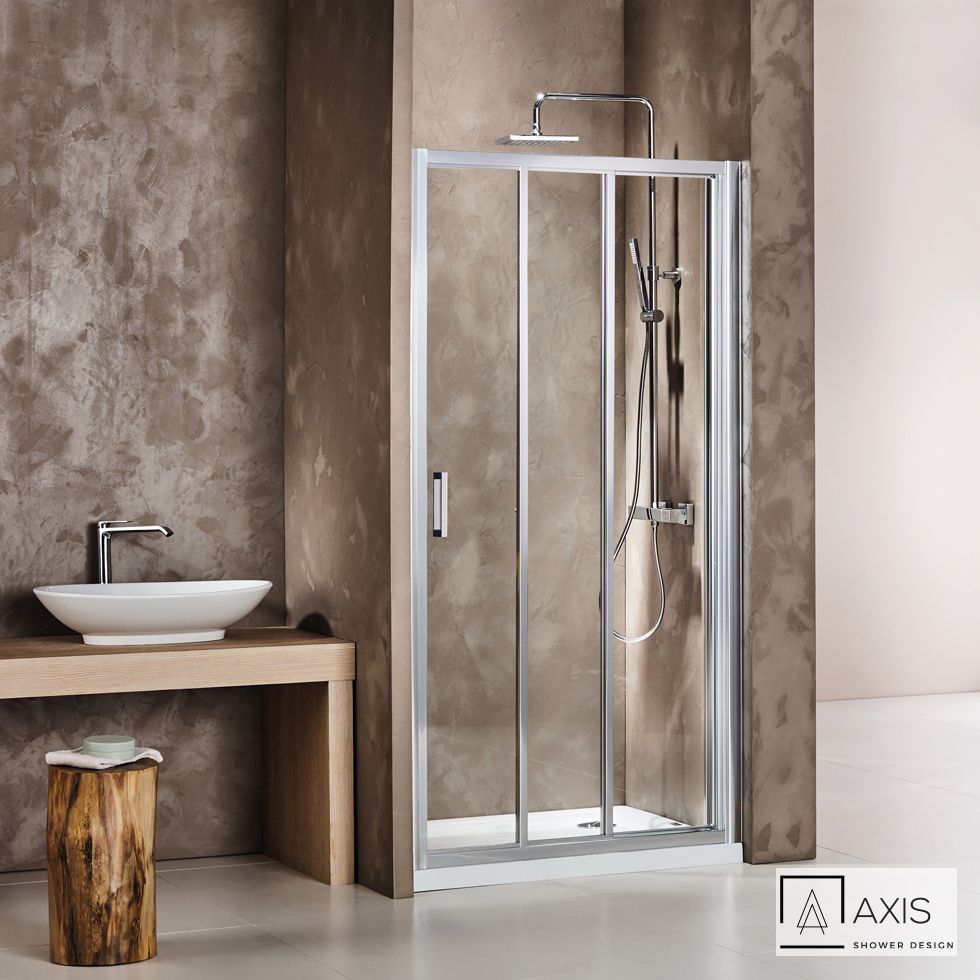 Συρόμενη τριπλή πόρτα καμπίνας ντουζιέρας AXIS 140 ύψους 185εκ. ρυθμιζόμενη από 137 έως 141εκ. Clean Glass Chrome SL3X140C-100